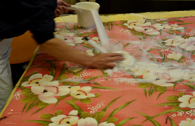 デアの布団クリーニングは分別方式。汚れ具合で布団を分け、他の汚れた布団とは一緒にクリーニングしません。ふとんクリーニングのプロたちは小さな汚れやシミも見逃しません。きめ細やかなシミ抜き作業など、クリーニングの工程をぜひご覧になってください。